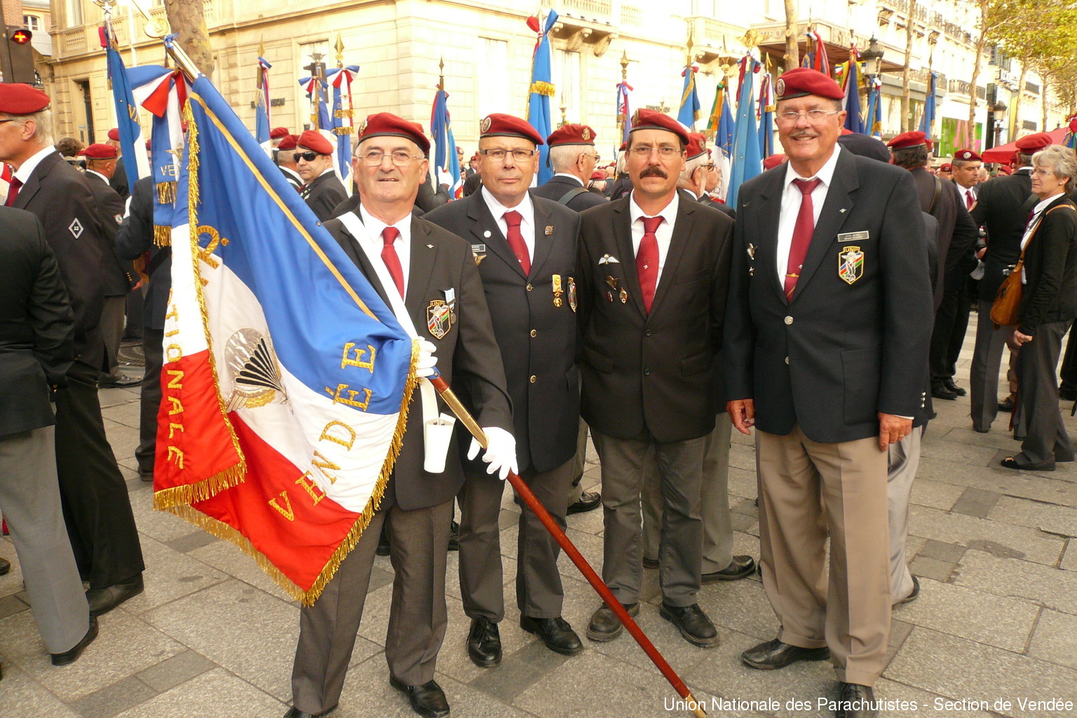 Comme tous les ans, une délégation de vétérans paras de Vendée a fait le voyage à Paris pour la Saint Michel Nationale. Qu'ils soient remerciés de leur dévouement et de leur attachement à nos valeurs. Cette année deux camarades étaient récompensés pour leur service au sein de l'UNP. Claude Pateyron et Bernard Vanney ont reçu leur décoration des mains du général Piquemal. Le Président Georges Thomas, Pierre Piga, Dominique Thomas et Gérard Soulard étaient du voyage. A Paris ils ont retrouvé Claude Grellier tout heureux de retrouver ses copains de Vendée. Cérémonie emouvante le matin aux invalides notamment lorsque la litanie des disparus de l'année 2011 a rappelé à notre souvenir plusieurs camarades de la section. Après un repas pris en commun, nos camarades ont remonté l'avenue des Champs Elysées jusqu'à l'Arc de Triomphe en chantant comme il se doit "debout les paras". Fatigués mais heureux ils sont rentrés tard dans la nuit avec le sentiment d'une journée bien remplie.